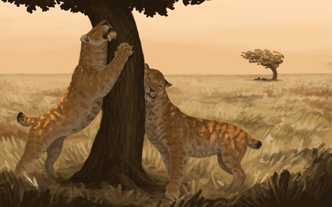 Probably still my all time favorite piece. Marking Territory. #Smilodon #Pleistocene #Paleoart #Sciart #conceptart #pampas
