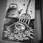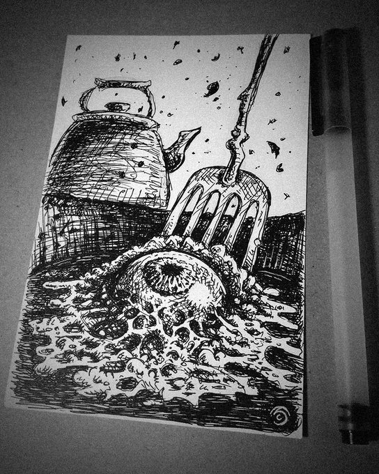 "Dark Times", ink on paper, 8.7" × 8.7" (without margins), 2021 I still have the original piece and wouldn't mind saying goodbye to it, if you know what I mean. #penandinkart #darkart