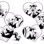 Pepe Le Pew, making a Valentines Card, drawn for Bugs Bunny Magazine many years ago. #pepelepew #warnerbros #warnerbroscharacters #cartooncharacters #drawing #illustration #linedrawing #blackandwhitedrawing #comicpage #comicart #valentinescard #valentinesday