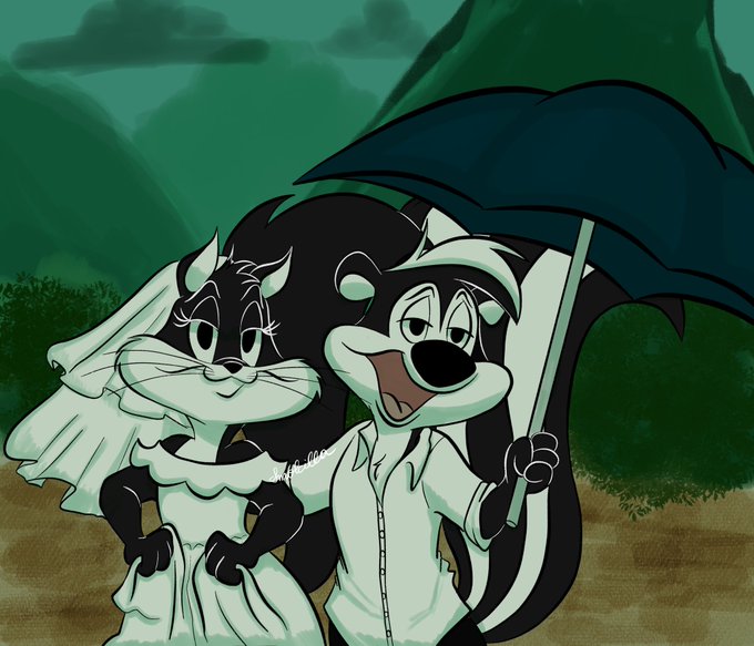 Love is in the air….literally! 🦨❤️🐈⬛#looneytunes #penelopepussycat #pepelepew #fanart #pucca