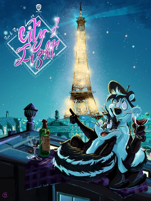 Recently friend (@Hublepew45) told me that before #CoyotevsAcme the @WB_Animation had cancelled a #LooneyTunes movie project about #pepelepew call city of light so I had fun imagining what a poster from this aborted project would look like. #FanartFriday #WeLovePepeLePew #WB
