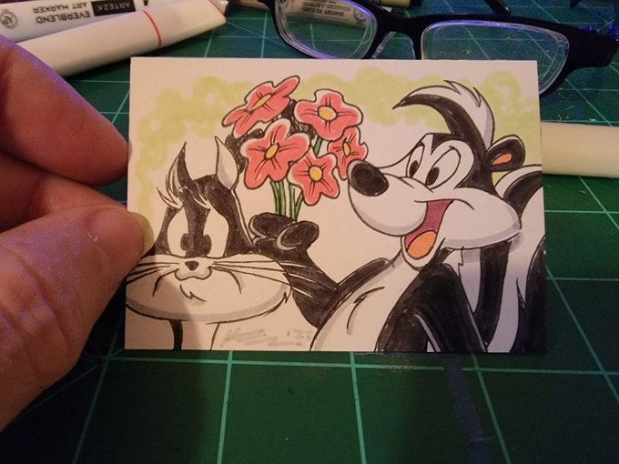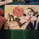 #inktober2022 day 6, Prompt word "Bouquet. " in the words of the J. Geils Band, "Love stinks." #inktoberday6 #looneytunes #originalart #pepelepew