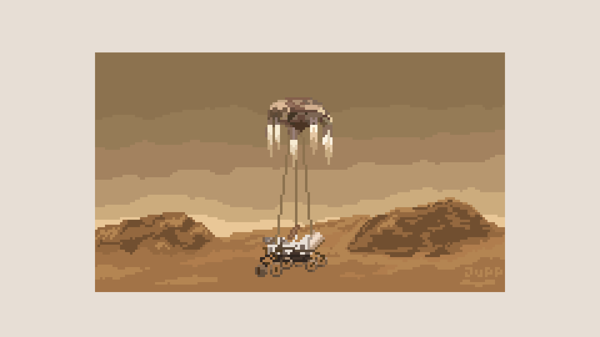 You send a spacecraft on a 470 million kilometer trip for 7 months and land a rover via sky crane within a predefined landing area of 7km radius, THAT is #precise. @Pixel_Dailies #pixelart #pixel_dailies #ドット絵 #Pixaki #Perseverance