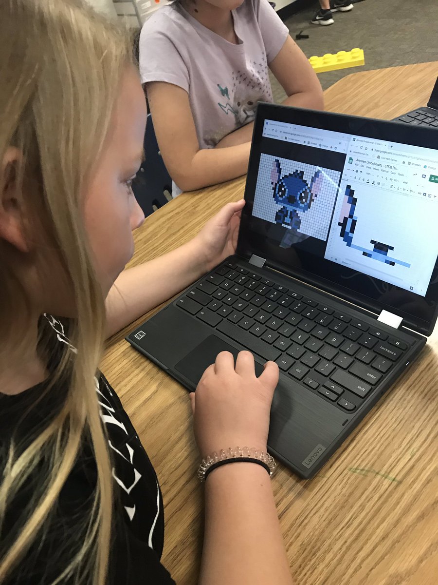 These @LegendSprings 5th graders were impressing me with their #creativity and skills with #PixelArt. The #Stitch and #Charmander are pretty detailed so #perseverance was key! Well done guys 🎉 #SAMR #GoogleSheets @DVUSD #Extraordinary