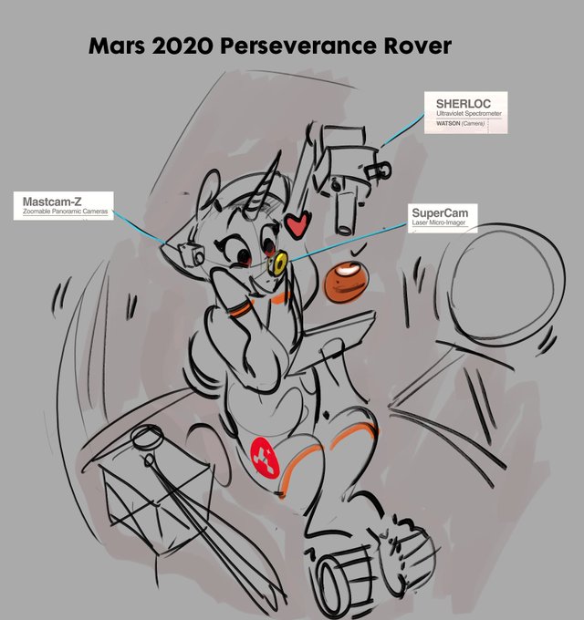 Congrats and happy anniversary to #Perseverance and Mars rover landing. I think my favorite Percy discovery is detecting ancient organic molecules in Jezero Crater. Here's my #art that celebrated the Perseverance launch and mission. #marsrover #illustration #spaceart