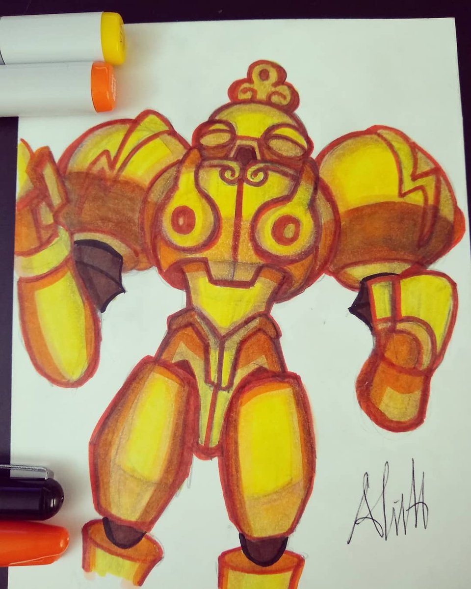 Day 16 of #inktober is Huitzil/Phobos, the robot. #inktober2019 #day16 #phobos #huitzil #darkstalkers #nightwarriors #ink #copicmarkers #copicsketch #robot #capcom