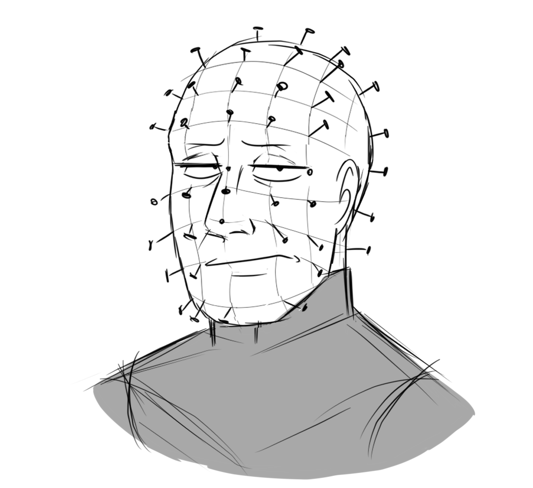 ■お題:一番好きなホラー映画 クライヴ・バーカーの「ヘルレイザー」です! 幼少期にうっかり見てピンヘッド様に一目惚れしました #ホラー映画版深夜のお絵かき60分一本勝負 #Hellraiser #Pinhead