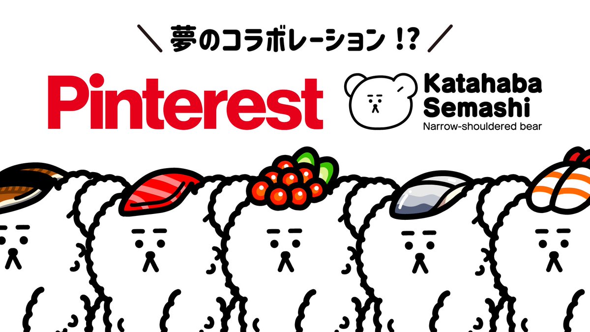 \㊗️#Pinterest ×かたはばせまし⁉︎/ 約30体の かたはばせまし@katahabasemashi と Pinterest Japan @PinterestJP が なんとコラボすることになりました! Pinterestさんありがとうございます🙇♂️ 詳しくはお楽しみ…✌️🐻🍣✨