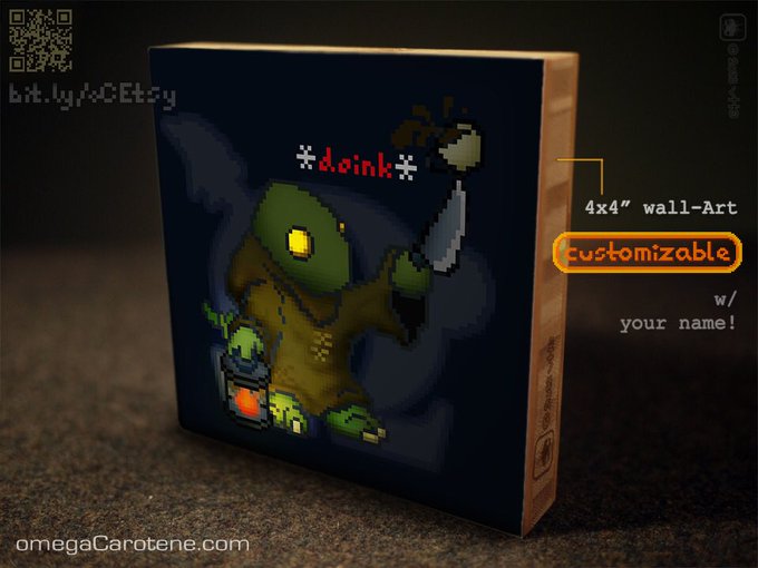 #TonberryThursday, n the #EtsySALE ends this Sun., yo~ 🔪 [🔥] my #pixelTonberry / tonberry (w/ coffee!) bamboo wallArt, and…i need sleep, ha…! #ドット絵 ⭕️ bit.ly/oCEtsy .