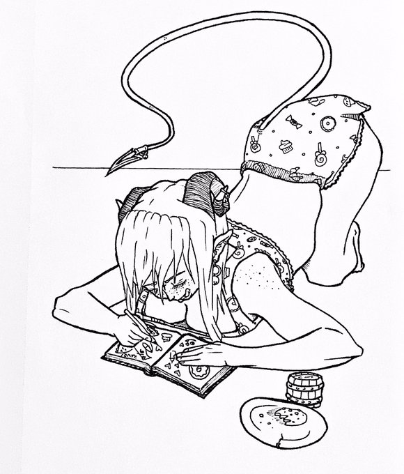 “Nightly Ritual” • Should I color it in? • • • #criticalrole #criticalrolefanart #jesterlavorre #jesterlavorrefanart #lineart #shouldicoloritin #jammies #pjs #milkandcookies #travelertalk
