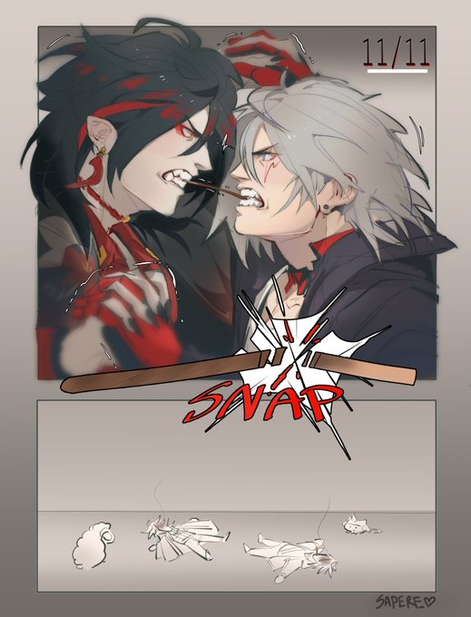 “Not thinking surrender yet, tengu?” #pockyday #ittosara #saraitto #kujousara #aratakiitto #Genshinlmpact
