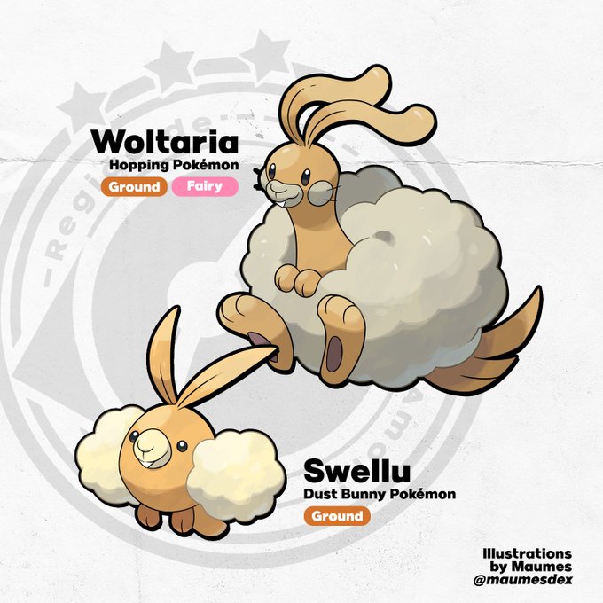 Meet Swellu and Woltaria, new convergent species I made after Swablu and Altaria! They are inspired by dust bunnies and the wolpertinger. ☁️✨ #pokemonscarletviolet #convergentpokemon #pokemonsv #svspoilers #pokemon #fakemon