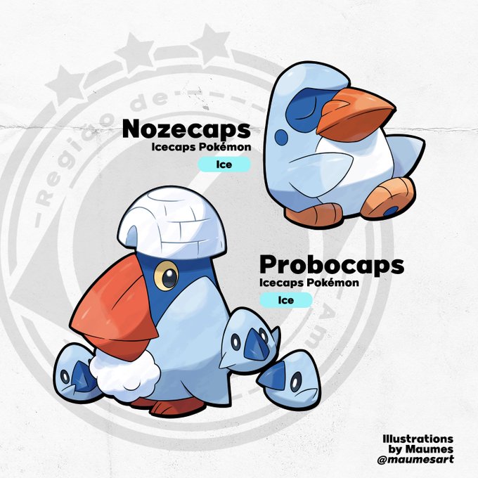 New convergent species alert! Meet Nozecaps and Probocaps, two cute Pokémon who look similar to Nosepass and Probopass. They are inspired by penguins and igloos. ❄️🐧❄️ #pokemonscarletviolet #convergentpokemon #pokemonsv #svspoilers #pokemon #fakemon