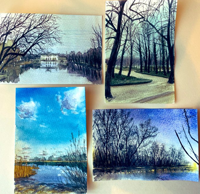 ポプラの木にそよぐ風は小鳥達を誘う 待ち続けた喜びの声、町中にこだまする 緑の芝生は大の字で光を受け止める 友と学び恋した日々、ふる里に春が来た (ふきのとう「ふる里に春が来た」) #水彩画 #風景画 #ふきのとう #ポーランド #watercolor #landscape #Poland #Fukinotou #JPOP