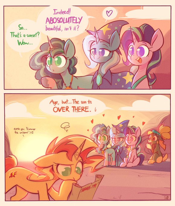 #Ponytober day 15 - Sunset They’re all watching the sunset, calming, no? #mlp #themsfightinherds