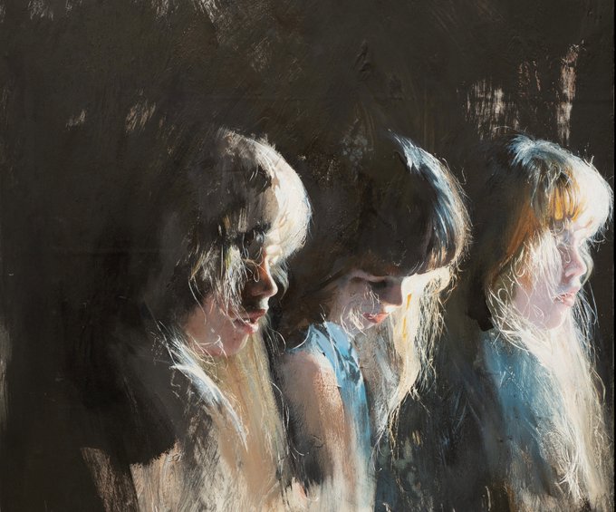 My life-size triple portrait of my daughter 'Special Needs' watercolour, egg tempera, ink, gesso #SpecialNeeds #hemiplegia #painting #portrait