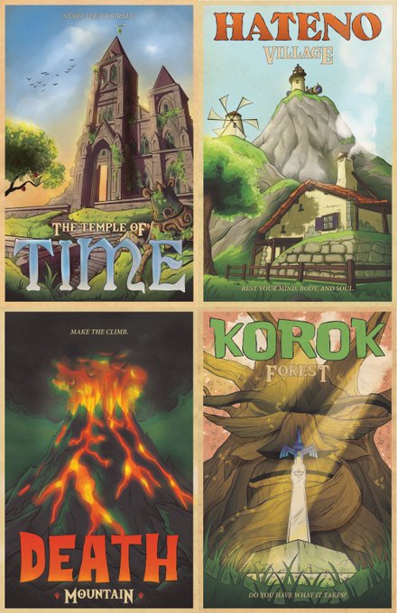 #linktober day 31 - Freebie. 4 Breath of the Wild travel posters I made recently! #linktober2022 #zelda #travel #sketch #posterdesign
