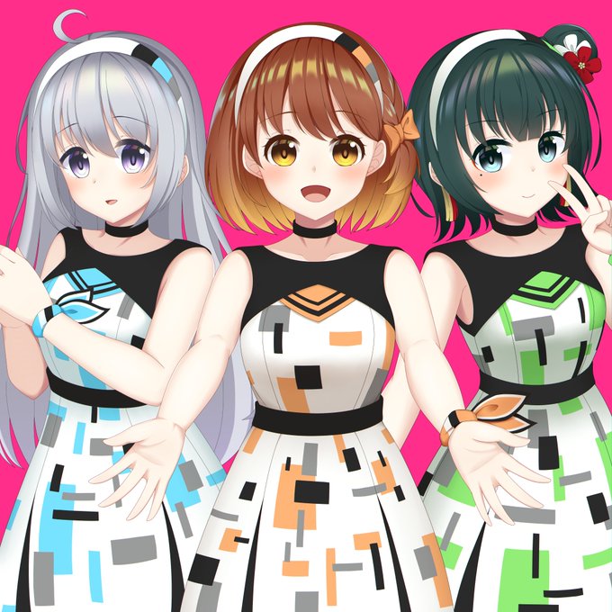 #clara_art #カナメアルバム #ヘノヘノハノン #pp_Sputrip #Sputrip2周年ライブ でお披露目の Starry☆Melody 衣装描いてみました、左からカナメちゃんクララちゃんハノンちゃんですとってもかわいいです!🥰 衣装デザインは愛原くく先生です✨