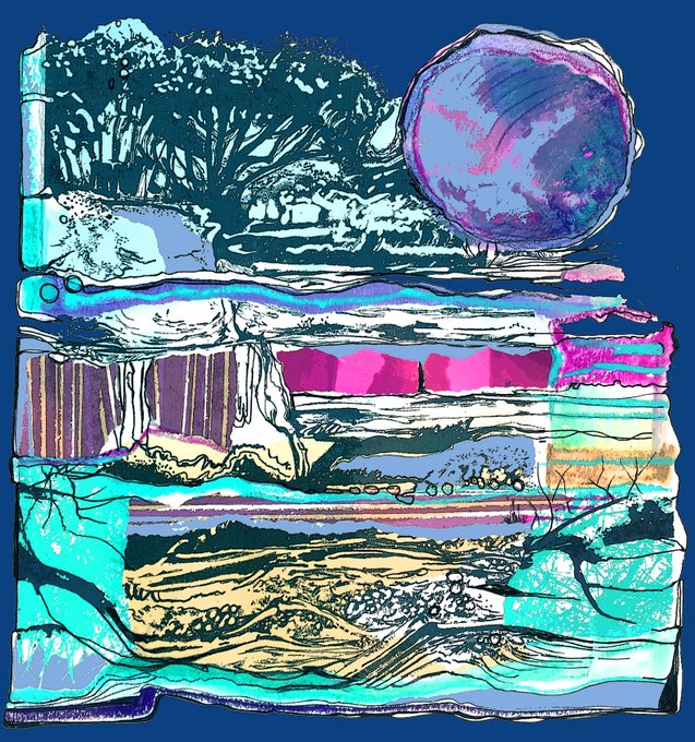 Loved seeing the full moon and have it as a constant image in my work over land and sea #woodland #seascape #trees #kent #landscape #artists #artwork #Wednesday #ColdMoon #coldweather #print #printmaking #misty