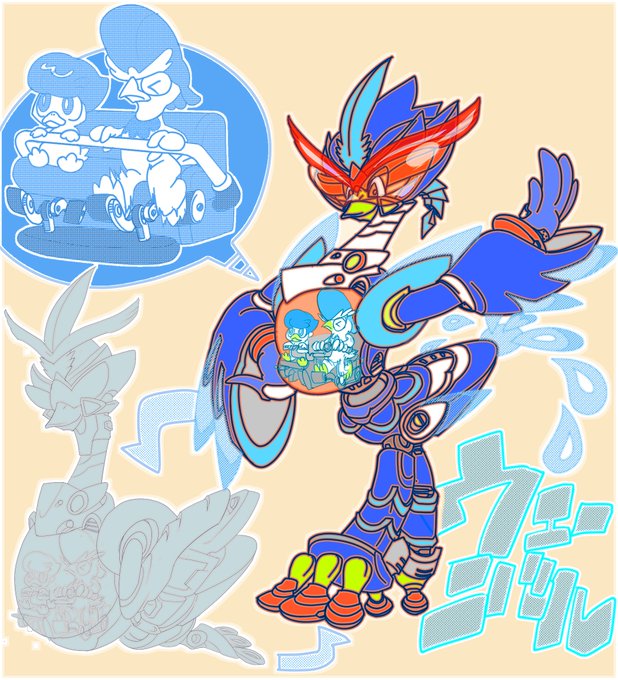 #クワッス #ウェルカモ が二人乗りする大型ポケモン型可変機 #QUAQUAVAL #ウェーニバル のメカアレンジ #quaxly #ポケモンSV #PokemonSV #ポケモンイラスト #絵描きさんとつながりたい ツリーに御三家メカ進化まとめ