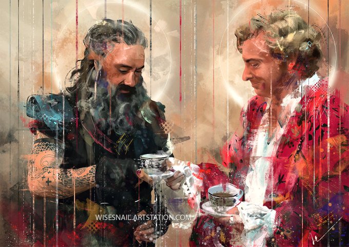 Today is the one day of the year I do what I want and makes me happy, so I decided to paint something #OFMD related <: Please have a #portrait of @rhysiedarby as #StedeBonnet and @TaikaWaititi as #Blackbeard 💙 I hope you like it!<: #OurFlagMeansDeath #RhysDarby #TaikaWaititi