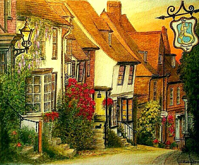 💕 My watercolour painting of Mermaid St. Rye ( from outside the Mermaid Inn ) 💕 #ArtistOnTwitter #watercolour #watercolor #painting #MermaidInn #Rye