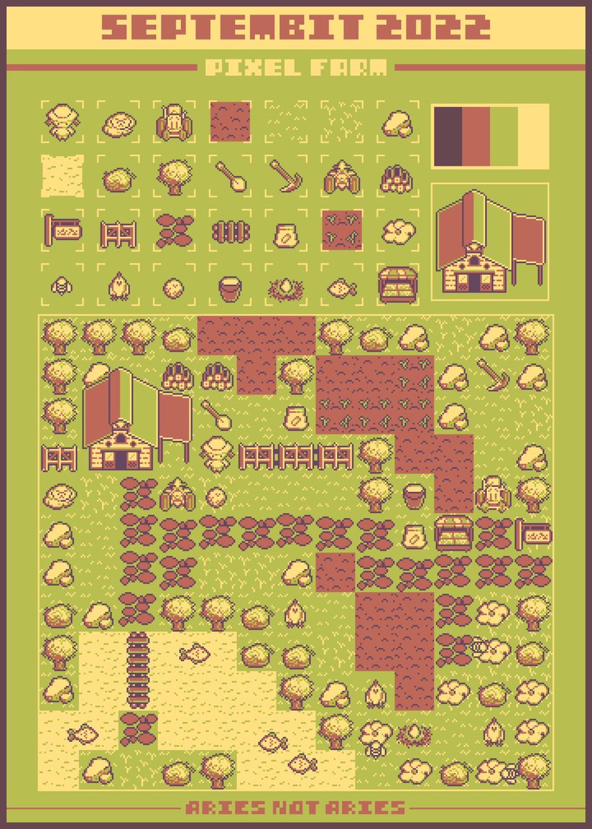 Day 30: Farm+ I combined all of the pixel art into my map! I enjoyed the process and learned much from it. If this happens next year, I’ll do it, maybe. #pixelart #septembit2022