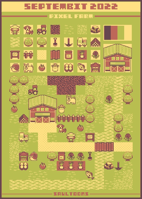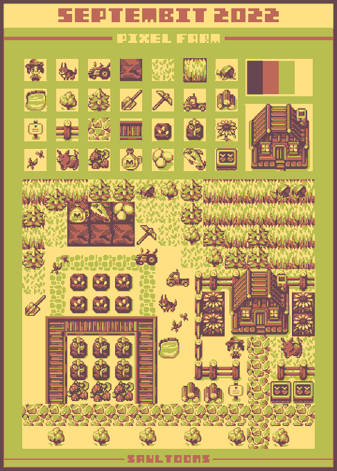 I finished Septembit! This was a super fun challenge that really made me consider readability and re-usability for each of the tiles. Thanks for hosting, @Saultoons! #pixelart #Septembit2022 @septembit