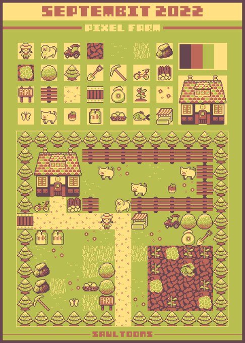 Day 30: Farm+ I finally draw all of the pixel art ! I enjoyed it. とうとう全部描き終わりました! 楽しかったです。 #pixelart #septembit2022