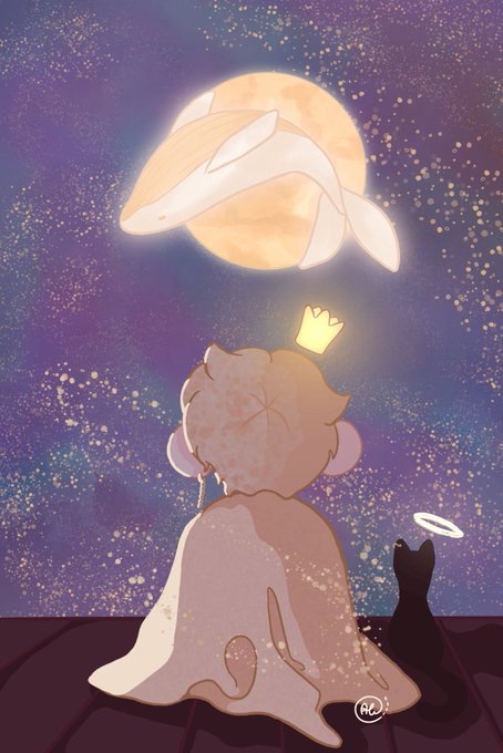 The Serendipity king and his cat companion with the whale swim around the moon~ 🌙✨ — #jimin #art #btsfanart #jiminart #artmy #army #serendipity
