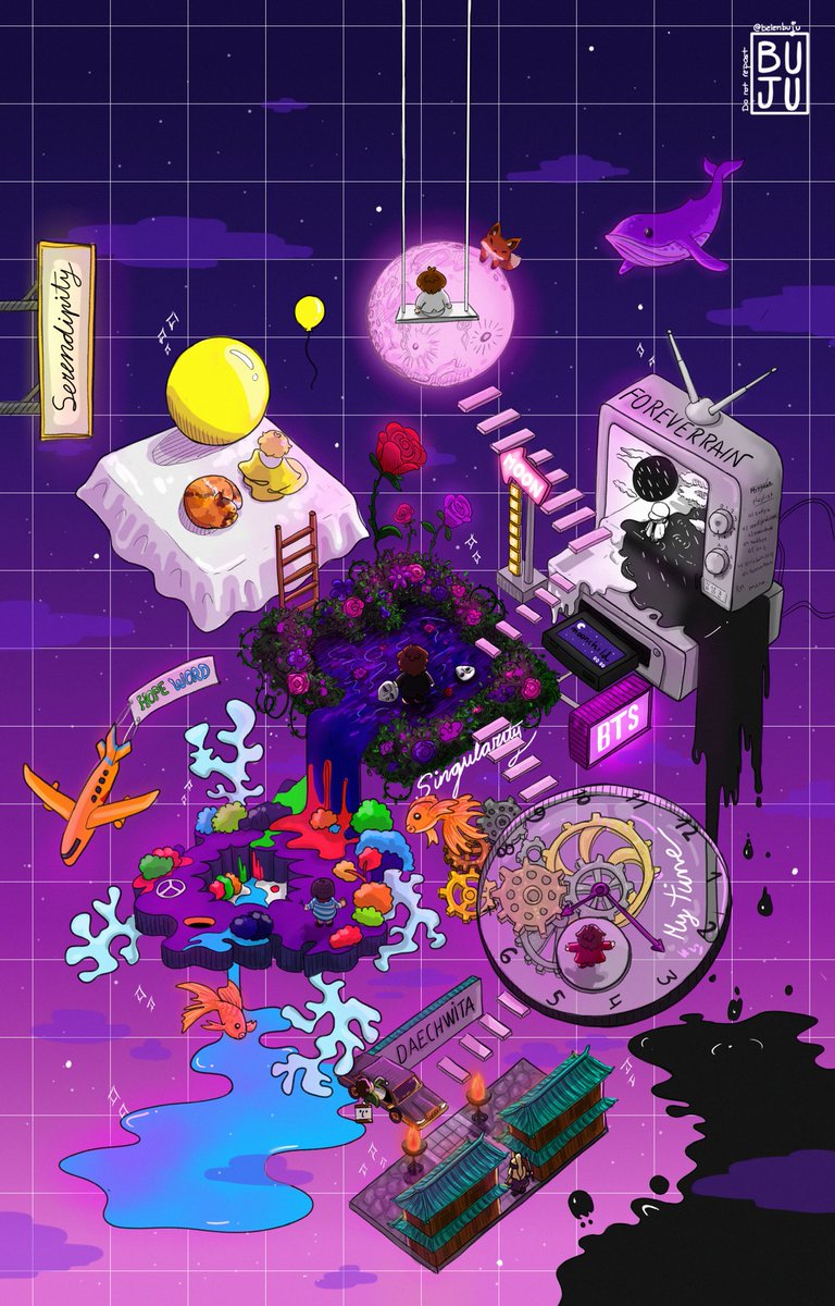 ✨BTS Tiny World✨ I hope you like it! I did the line art by hand and then colour it with digital DETAILS on next twit 💜 PD: It can be used as a phone background #BTS #btsfanart #mono #DAECHWITA #singularity #serendipity #HopeWorld #mytime