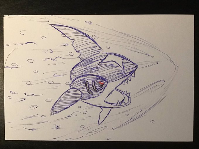 #inktober day 26, dark! here’s my favorite dark type, sharpedo! 🌊🦈 #inktober2019 #inktoberday26 #pokemon #pokemonart #sharpedo #サメハダ