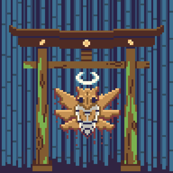 'Something #Hollow guards the old mossy shrine. It seems harmless, but it makes me feel... unwelcome...' #pixelart #pixel_dailies @Pixel_Dailies #ドット絵 #pokemon #shedinja #erogecopper