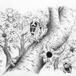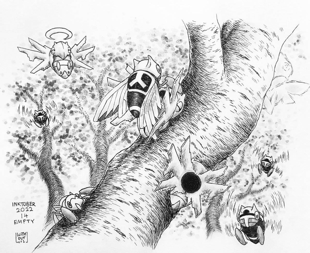 Mass Emergence Inktober 2022 Day 14 - Empty Inspired by a phenomenon where certain cicada species emerge & pupate en masse in sync every few years. #inktober #inktober2022 #nincada #ninjask #shedinja #inktober2022empty