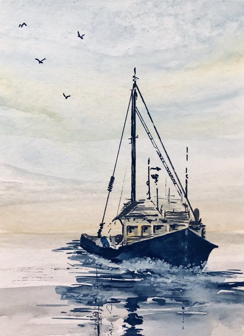 Nominated by @ValerieCalleno1 - sharing my art and positivity. I hope it is calming and soothes your soul. I now nominate @ahoog2 if he would like to play along. #ships #boat #watercolor #watercolorpainting