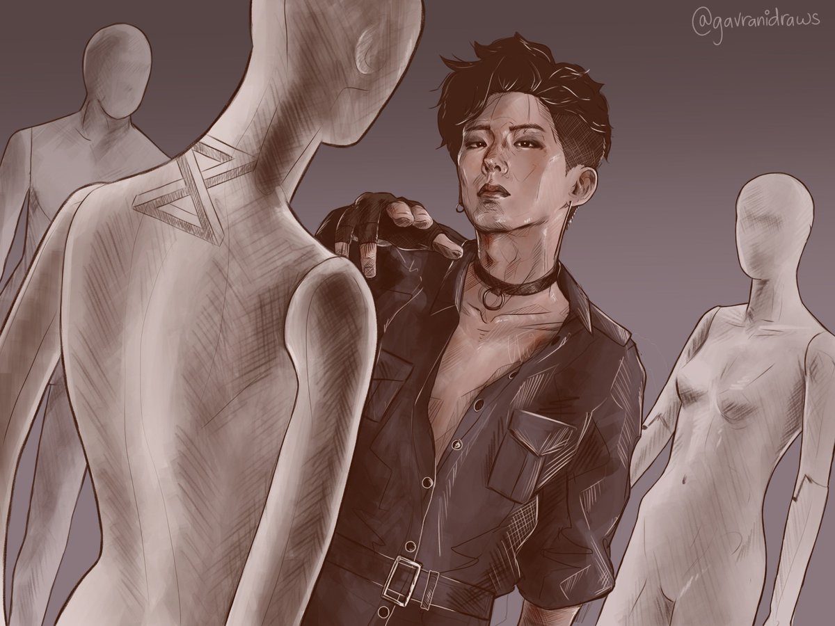 A crown of thorns for a deadly sin. . . #ShootOut #몬스타엑스 #MONSTA_X #ARE_YOU_THERE #monstaxfanart #MINHYUK #민혁 #fanart #inktober #MONSTAX_ShootOut
