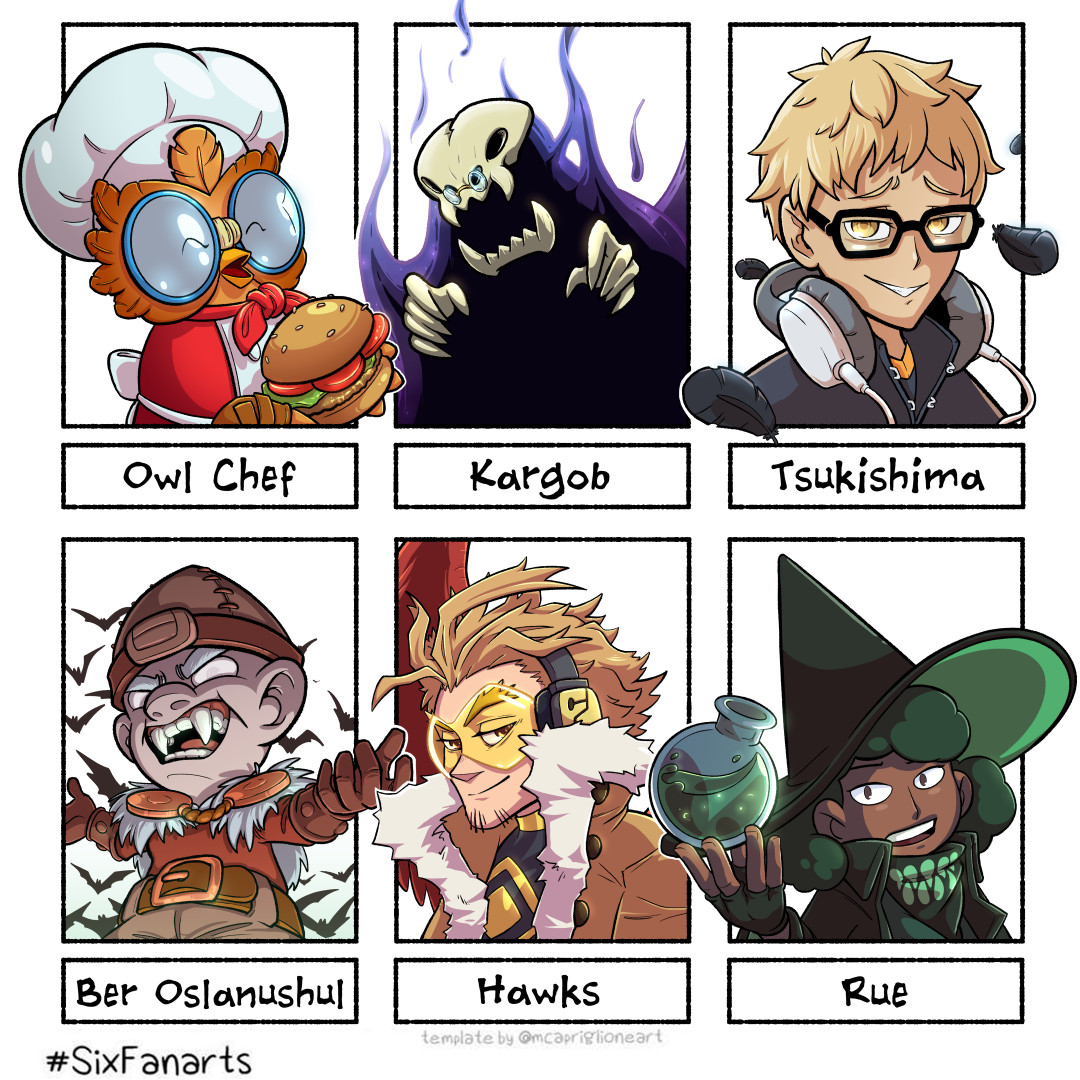 Jumping in on this #sixfanarts deal for some colour practice. #Overcooked #SwordsComic #Haikyuu #Kruggsmash #MyHeroAcademia #SleeplessDomain