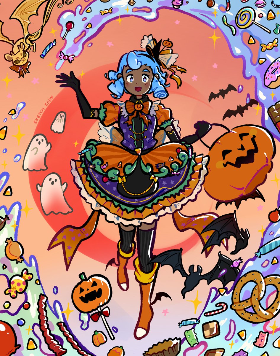 its a few days late but here's a spooky magical girl combo i drew for the #SleeplessDomain halloween artgame!! :3 do you prefer a sweet or creepy aesthetic? 🎃👻