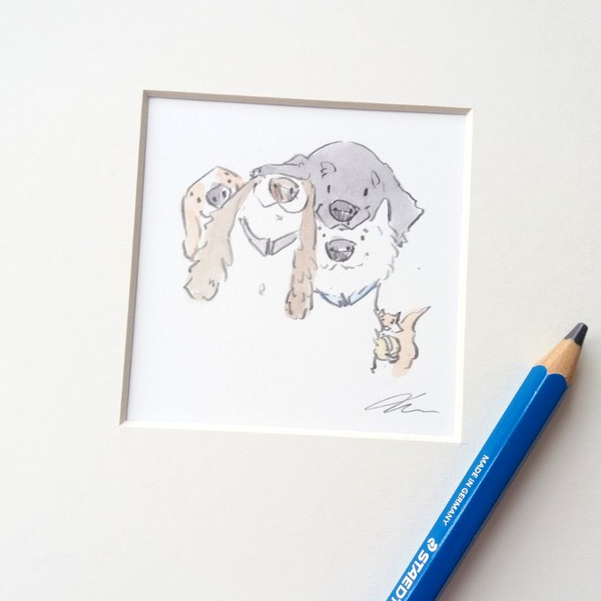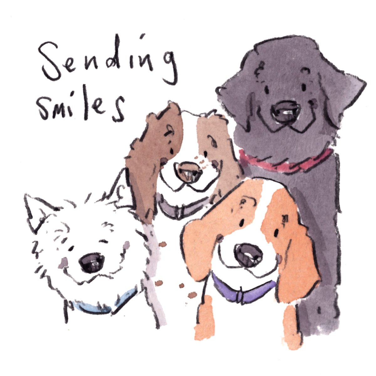 Hello, lovely people and lovely dogs. I hope that you've had a splendid day. Tomorrow, at 6pm GMT, I shall be selling some of the original paintings of the team's smiles. If you'd like to get your paws on one, check back tomorrow. #hoorayfordogs #smiles