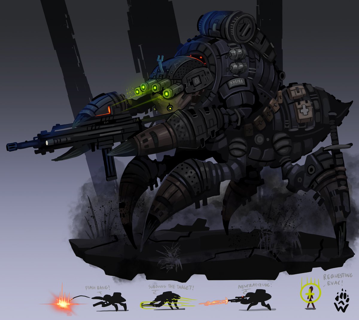 "Tango Six-Legs, going dark..." 'sect-ops Khepri - a.k.a Khepri with a Gun SMITE skin concept! #SMITE #fanart #conceptart