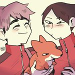 day 4: foxes / pets snos as fox pokemon trainers! suna with zorua and osamu with shiny nickit 🦊✨ #sunaosa #snostober