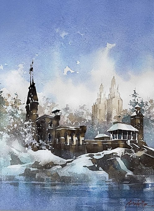 Winter - Belvedere Castle @CentralParkNYC @nyc_media @NY_impressions #winter #snow #art #architecture #watercolorpainting #painting
