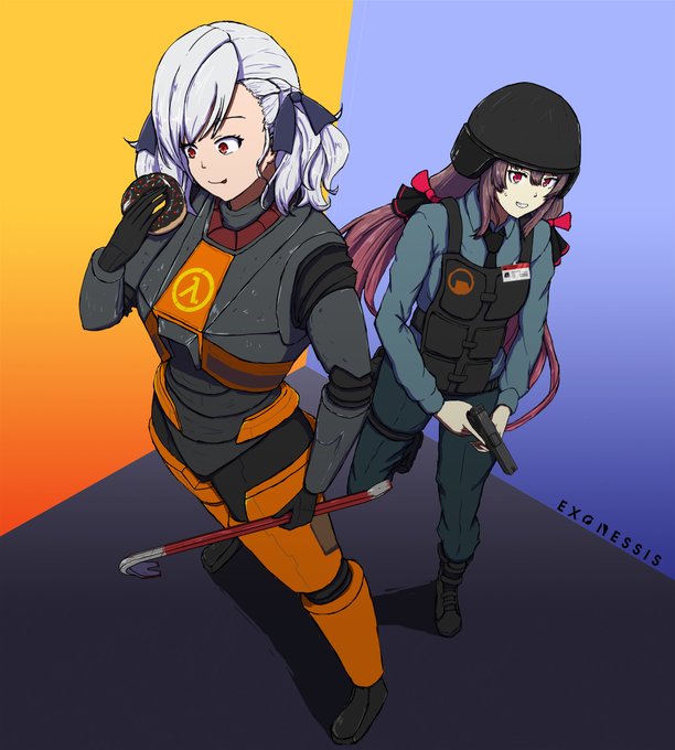 Half-Life x GFL feat SPAS and Glock 17 Requested by Tibby at Ko-fi #GirlsFrontline #少女前線 #ドールズフロントライン #SPAS12 #artwork #イラスト
