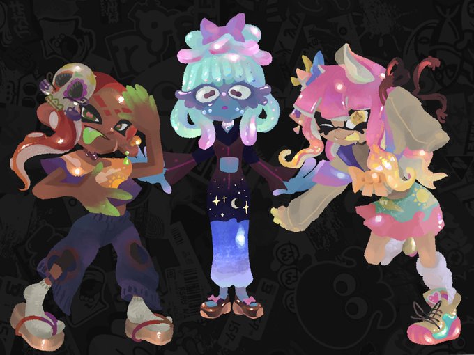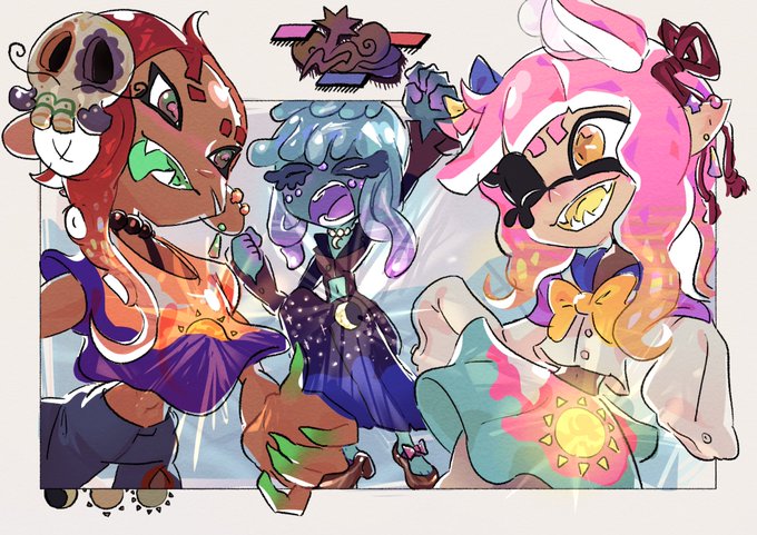 [oc] finally drew my lesbian splatoon idols!! their group name is called lumina tides ♡ #splatoon3 #splatoonoc