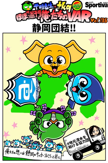 【ほぼ週刊俺たちのVAR⚽】 普段はライバルでも、緊急時には協力し合うのがサッカーファミリー! 静岡のいち早い復興を願います! #がんばろう静岡 !! @km29soccer #地元清水を助ける協力団 #spulse #ジュビロ磐田 #藤枝MYFC #アスルクラロ沼津 #俺たちのVAR 連載一覧▶️ lnky.jp/ezYBU2v