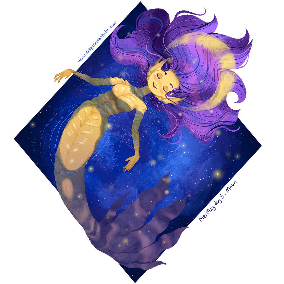 Mermay day 5: "Moon". I had a lot of ideas for this one but decided to go with a design that was more challenging and unusual 🌙 #mermay #mermay2021 #MerMayWithErika2021 #mermaid #mermaidart #magical #moon #starry #stars #galaxy #celestial