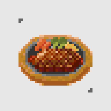 Welcome to Anicca's #Steak House! Here is our medium, #pixelated #RibEye garnished with #mustard, #mintjelly, #butter, #gravy, #babycarrots, #broccoli & #babypotatoes! @Pixel_Dailies | #pixel_dailies | #food | #Meat | #garnish | | #beef | #vegetables | #pixelart | #ドット絵 |