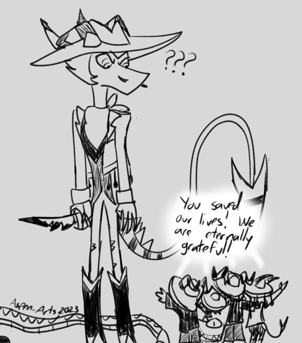 After hunting for dinner, Striker accidentally gains some new followers...which he regrets to this very day. Just a silly headcanon of mine. XD #HelluvaBoss #Striker #HelluvaBossFanart #HelluvaBossStriker