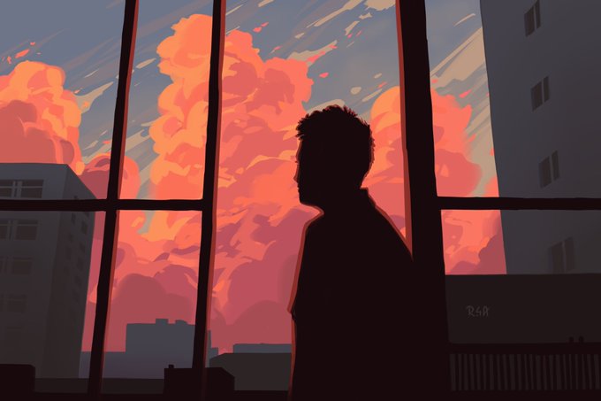 Sunset (post story) [1/2] - Something that definitely may not happen but decided to draw it anyway 😅 - #unecoffee #tianshan #hetian #moguanshan #19days #oldxian #19daysfanart #oldxian19days #manhua #fanart #digitalart #fancomic #sunset