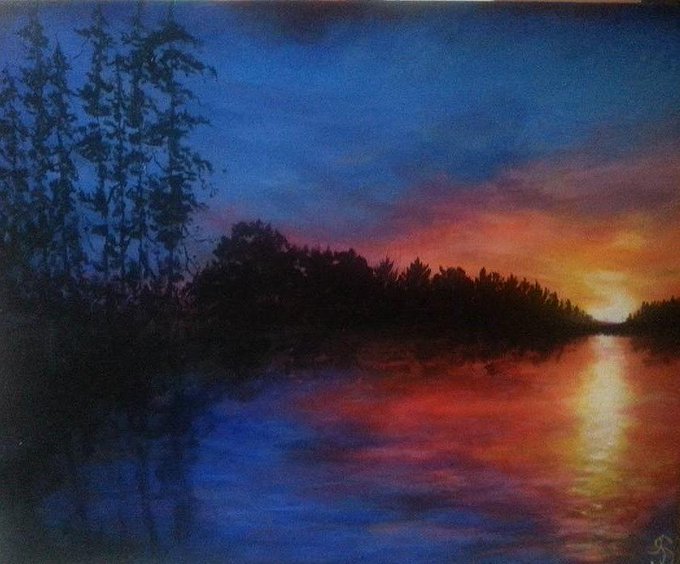 This is my painting “Sunset in the forest” 🎨 #sunset #birch #birchtrees #oilpainting #art #artistontwitter